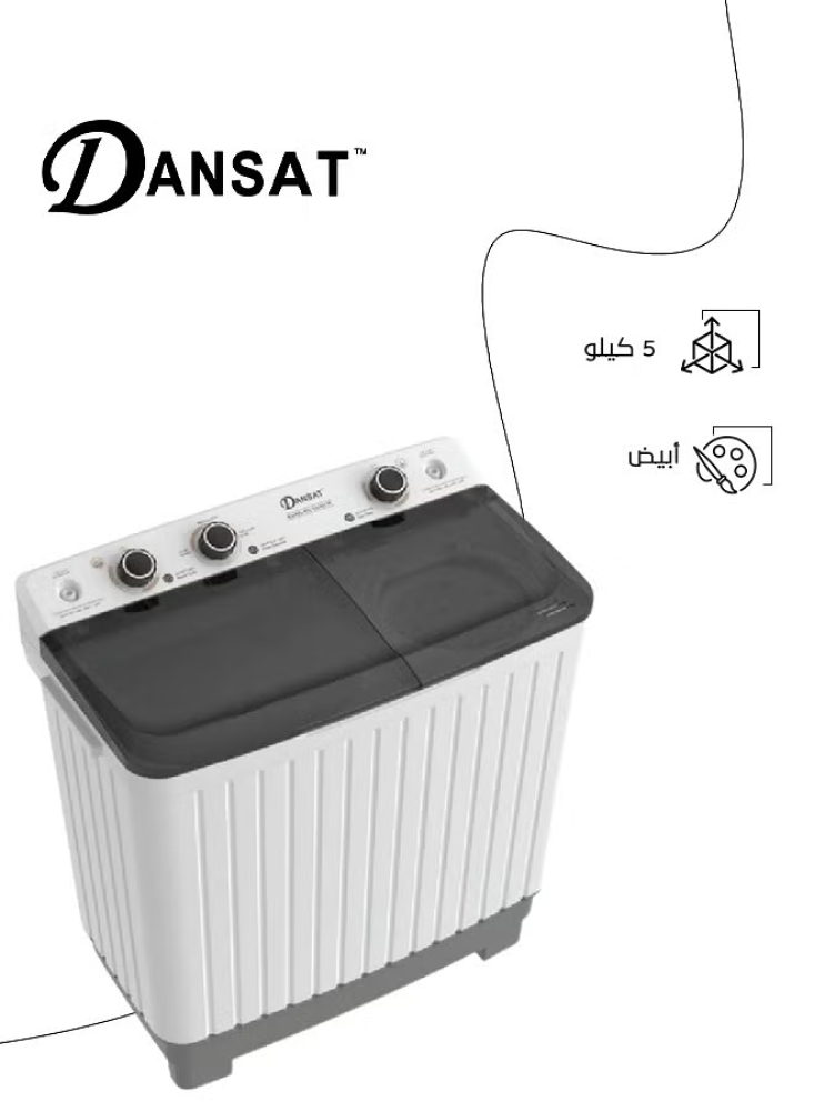 غسالة دانسات 5 كيلو حوضين DAN5TW ، تصميم مدمج لغسيل سريع وفعال.