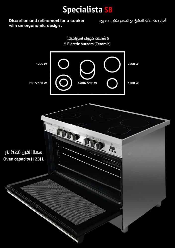 لأنه يجمع بين التقنية، السعة، والأناقة: سطح سيراميك كهربائي بخمس مناطق، فرن كهربائي بسعة 123 لتر، طلاء تيتانيوم سهل التنظيف، مع تصميم إيطالي فاخر مما يجعله الخيار الأمثل للمطابخ العصرية والمتطورة.