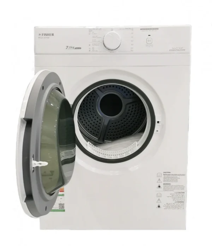 نشّاف فيشر أمامي بسعة 7 كيلو مع تقنية البخار، يمنحك تجفيف سريع وفعال مع حماية الأقمشة من التجاعيد.